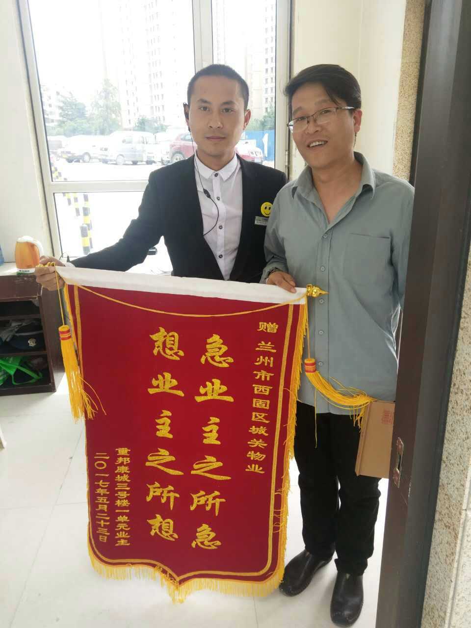 524上午11點(diǎn)左右,重邦康城小區(qū)一戶業(yè)主將一副題為“急業(yè)主之所急,想業(yè)主之所想”的錦旗送到了物業(yè)辦公室,感謝物業(yè)人員在干好本質(zhì)工作的同時(shí),積極熱心的幫忙尋找自家的小狗。該業(yè)主強(qiáng)調(diào),自從入住這個(gè)小區(qū)以來,每一天都過的很舒心,城關(guān)物業(yè)工作人員專業(yè)素質(zhì)強(qiáng),服務(wù)熱情周到。在得知小狗丟了的情況下,積極主動(dòng)的安排人員幫忙尋找,并最終找到小狗。感謝城關(guān)物業(yè)提供如此優(yōu)質(zhì)、貼心、專業(yè)的服務(wù)。田曉晨經(jīng)理說道,業(yè)主的事不論大小,只要有需要,我們定會(huì)全力以赴。