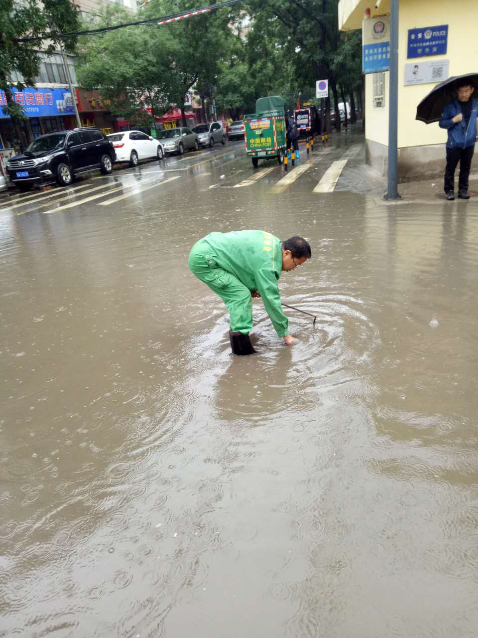 暴雨來(lái)襲,城關(guān)物業(yè)每位員工都堅(jiān)守在抗擊暴雨的第一線。保安們?cè)陲L(fēng)雨中麻利的扛起一袋袋防汛沙袋壘在車(chē)庫(kù)、地下室等低洼地區(qū)的入口,以防雨水倒灌。保潔員們用清潔工具不停地將室內(nèi)積水往外排,為了保證順利排水,在暴雨中查看下水道口,不顧水浸濕褲管和衣袖,直接將手伸進(jìn)下水道口,把灌入的雜物清出。為了更迅速的排水,他們沒(méi)有打傘,兩手握著棍子奮力的疏通下水道。技術(shù)維修部的同事們時(shí)刻查看設(shè)備是否進(jìn)水,是否正常運(yùn)行。雖然是在室內(nèi),可是他們也已經(jīng)渾身大汗,即使是這樣,也一刻不放松。據(jù)第一事業(yè)部王總介紹,此次暴雨雖說(shuō)突然,但是對(duì)于各項(xiàng)目來(lái)說(shuō)卻一點(diǎn)也不突然,因?yàn)樽?/span>4月份開(kāi)始,各項(xiàng)目部就已經(jīng)成立了應(yīng)急小組,儲(chǔ)備了防汛物資,如沙袋、手電等,再加上日常的演練,每個(gè)人都已經(jīng)對(duì)自己的工作輕車(chē)熟路了,在這這樣的前提下安排工作省時(shí)又高效。因此,此次的防洪抗暴工作才能在最短的時(shí)間內(nèi)達(dá)到最好的效果。