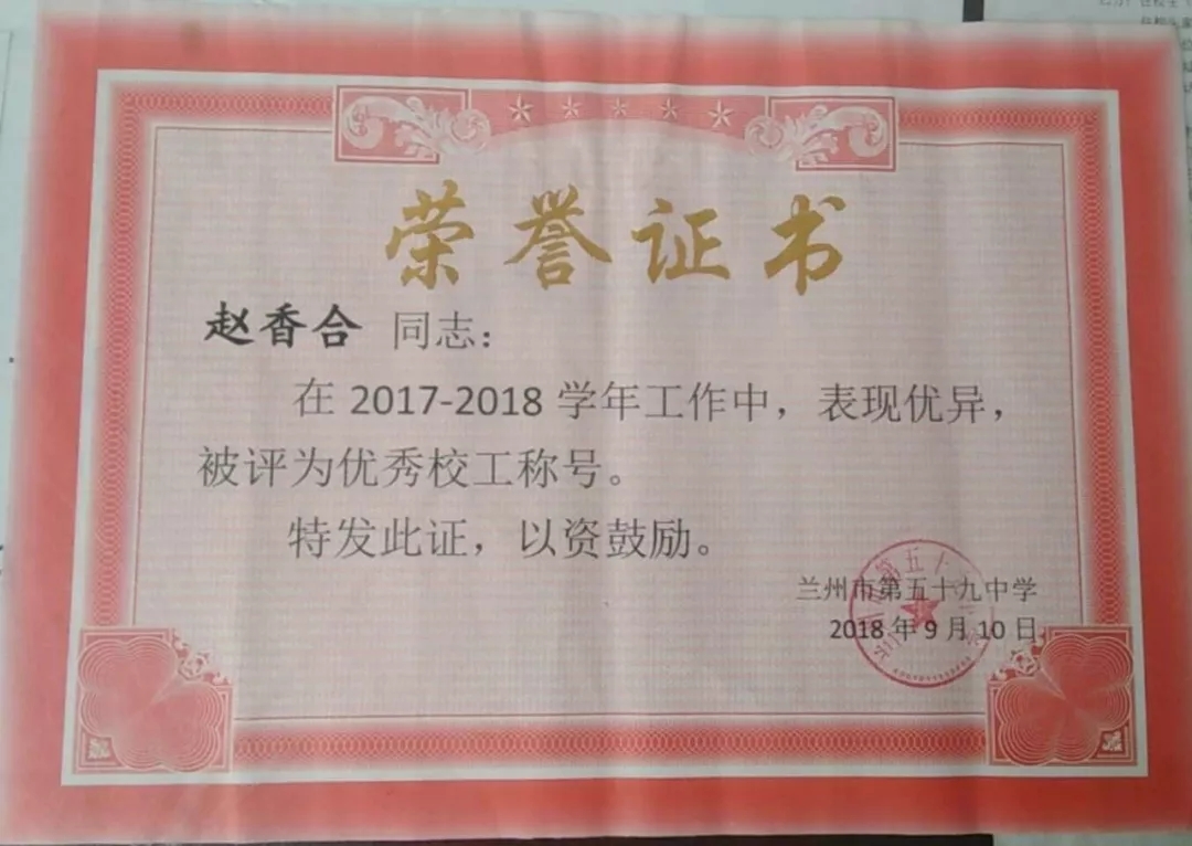 ▲校方給城關(guān)物業(yè)員工頒發(fā)的獎(jiǎng)狀