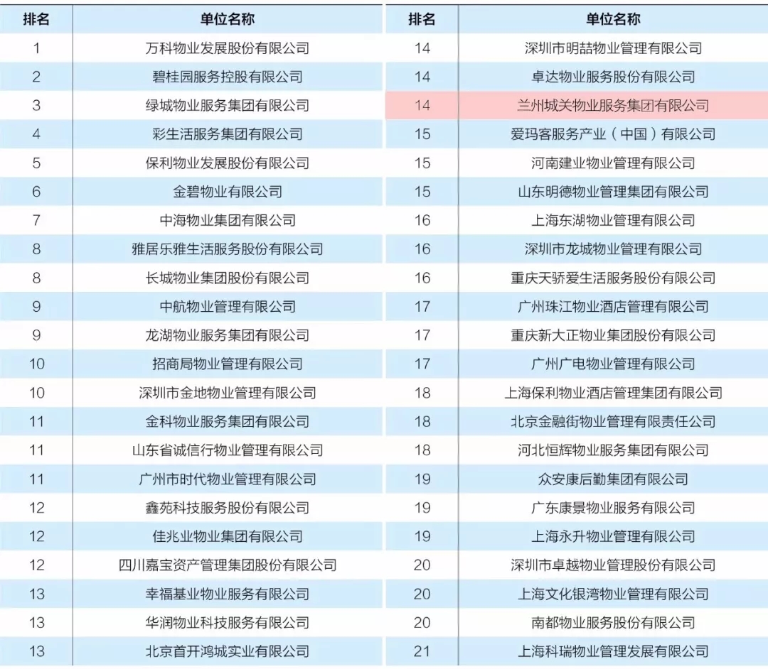 中國(guó)物業(yè)服務(wù)企業(yè)綜合實(shí)力TOP100(前21名)