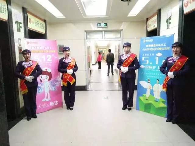 城關(guān)物業(yè)醫(yī)院類(lèi)各項(xiàng)目部在護(hù)士節(jié)當(dāng)天,在醫(yī)院各主要入口處擺放節(jié)日祝福展架,并向來(lái)往的醫(yī)護(hù)人員行禮,向他們送去節(jié)日的祝福。
