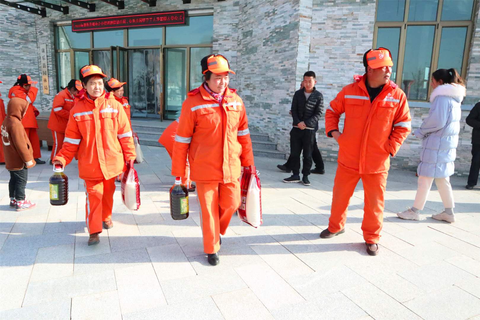 康樂縣園林局領(lǐng)導(dǎo)在仔細(xì)詢問了員工的工作和生活情況后,對大家的辛勤付出表示了肯定和感謝,將新春慰問品送到每一位物業(yè)員工的手中,并一再提醒大家:一定要注意身體,合理安排好作息時(shí)間。我們的員工在感受到親切問候和關(guān)懷后,無比振奮,滿臉笑容。雖然寒風(fēng)陣陣,但是心里卻是暖洋洋的。