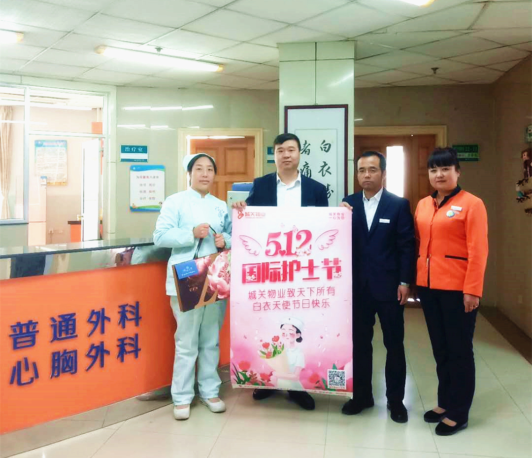 蘭州城關(guān)物業(yè)服務(wù)集團有限公司服務(wù)業(yè)態(tài)多樣,目前主要有住宅類、城市管理類、寫字樓類、醫(yī)院類、院校類、其他類等。此次, 值此5·12國際護(hù)士節(jié),蘭州城關(guān)物業(yè)醫(yī)院類事業(yè)部與白衣天使進(jìn)行了一場美麗的約會,我們特別組織舉辦了相關(guān)慰問活動,分別向蘭大一院、蘭大二院、肺科醫(yī)院等各科室護(hù)士贈送了禮品及鮮花,為這些始終堅守一線的白衣天使送去節(jié)日的祝福,此舉獲得了院方領(lǐng)導(dǎo)的一致好評及贊譽。