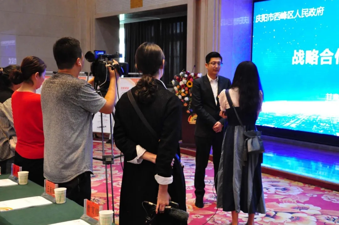 參會人員觀看城關(guān)物業(yè)公司宣傳片及全域無垃圾專項治理投資項目示范案例視頻后,慶陽市西峰區(qū)區(qū)委常委、常務(wù)副區(qū)長李廷位、蘭州城關(guān)物業(yè)服務(wù)集團(tuán)有限公司總裁楊佳林代表雙方簽訂合作協(xié)議。