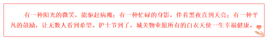 是每一個微小卻又強大的他們, 治愈著我們的身心, 守護著我們的生命安全。 因為有他們, 病毒來襲時我們不再害怕, 因為有他們, 我們才看到了這場戰(zhàn)“疫”的希望…… 讓我們一起, 向所有奮斗在工作崗位上的白衣天使, 致敬! 祝所有白衣天使節(jié)日快樂! 你們辛苦了!