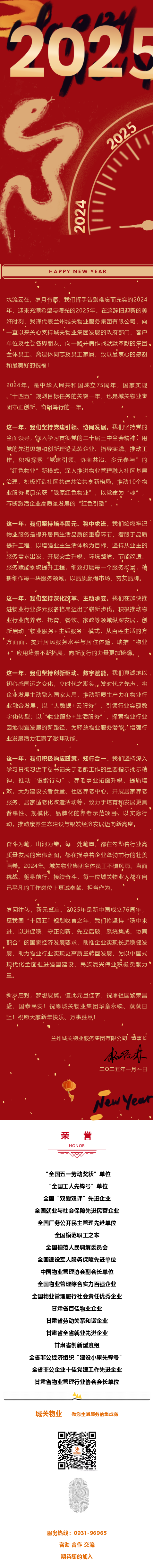 蘭州城關物業(yè)集團二〇二五年新年賀詞